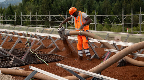 Nous traitons efficacement gravier, sable, terre, ciment, copeaux de bois, cendres ou scories, même dans des environnements difficiles. Grâce à la fonction de refoulement par soufflage, nous assurons également la mise en place précise de gravier, verre recyclé ou substrats extensifs.